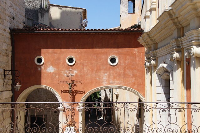 - Der Rosenkranzaltar in der Kathedrale von Antibes (um 1515, der Glockenturm stammt aus dem 12. Jahrhundert)
